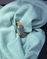 Channel the soft shimmer of moonlight with the Moon Mist Glow — a ring that speaks of serenity, mystery, and timeless elegance. This celestial-inspired piece features a smooth, round moon-grey cabochon nestled in a polished golden bezel, creating a luminous contrast that feels both grounded and ethereal.